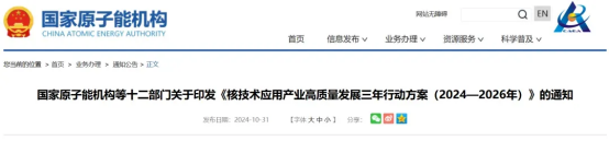 2024Äê10ÔÂ31ÈÕ£¬¹ú¼ÒÔ×ÓÄÜ»ú¹¹¡¢Éú̬»·¾³²¿µÈÊ®¶þ²¿ÃŹØÓÚÓ¡·¢¡¶ºË¼¼ÊõÓ¦ÓòúÒµ¸ßÖÊÁ¿·¢Õ¹ÈýÄêÐж¯·½°¸£¨2024¡ª2026Ä꣩¡·µÄ֪ͨ¡£Í¨ÖªÖ¸³ö£¬µ½2026Ä꣬ÎÒ¹úºË¼¼ÊõÓ¦ÓòúÒµ×ÔÖ÷´´ÐÂÄÜÁ¦ÏÔÖøÌáÉý£¬²úÒµÁìÓò½øÒ»²½ÍØÕ¹¡£Î§Èƺ˼¼ÊõÔÚҽѧÕïÁÆ¡¢Å©ÒµÓýÖÖ¡¢Ê³Æ·¼Ó¹¤¡¢²ÄÁϸÄÐÔ¡¢°²¼ì°²±£µÈÖØµã·½Ïò»òÁìÓòµÄÓ¦Óã¬Í»ÆÆÒ»Åú¹Ø¼ü¼¼Êõ£¬½¨ÉèÒ»Åú´´ÐÂÆ½Ì¨£¬ÅàÓýÒ»Åúר¾«ÌØÐÂÆóÒµ£¬Á¦ÕùºË¼¼ÊõÓ¦ÓòúÒµÄêÖ±½Ó¾¼Ã²úÖµ´ï4000ÒÚÔª£¬Îª´«Í³²úҵתÐÍÉý¼¶×¢ÈëÇ¿¾¢¶¯ÄÜ¡£