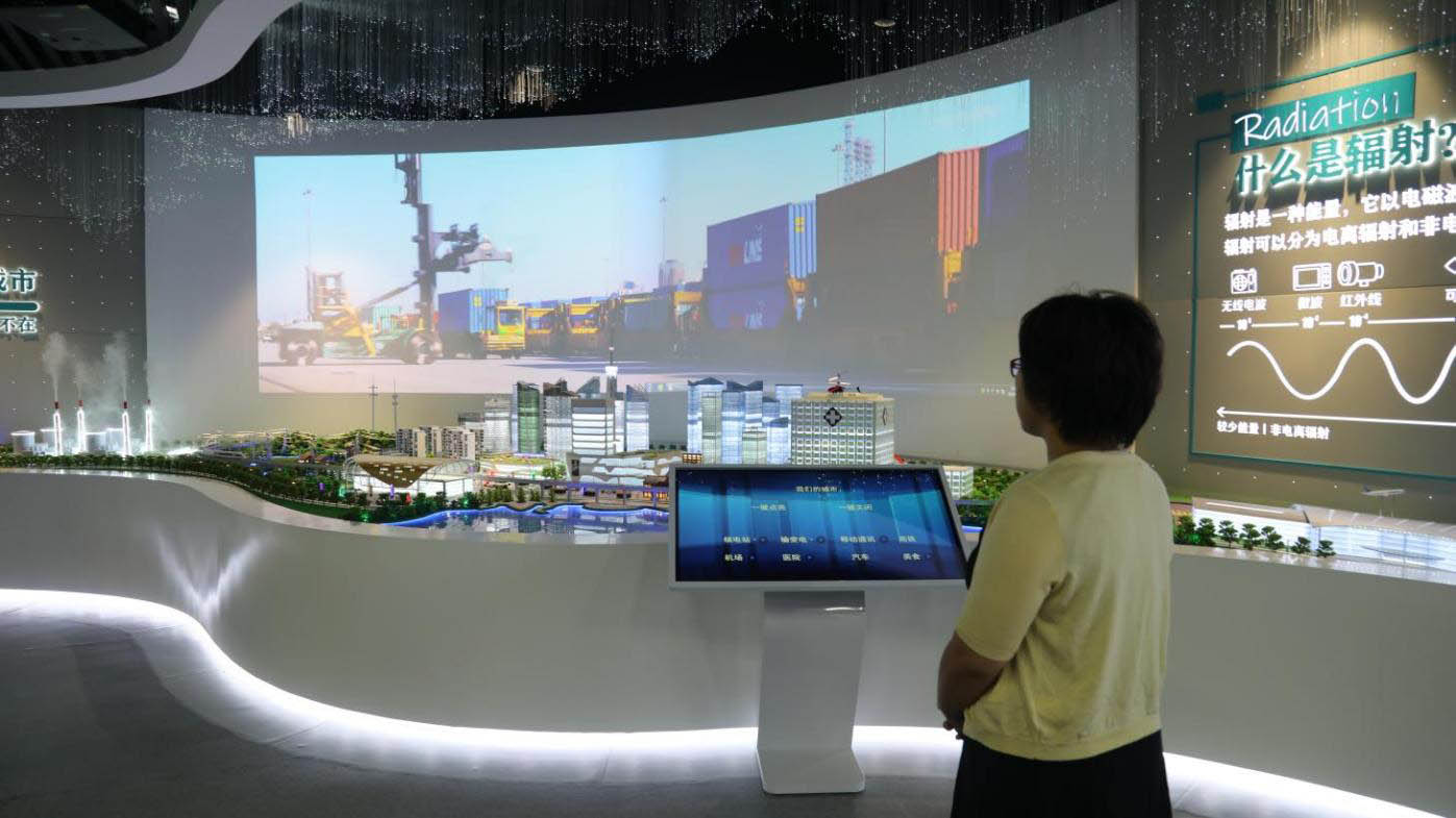 我们的城市综合板块,为了让公众在轻松愉快的情绪中了解辐射,该板块通过 3D 物理沙盘来再现我们的城市,模拟公众的日常生活场景,把可能会给我们带来辐射的环境或设施,如:核电站、输变电设施、医院、通讯网络设施等,合理巧妙地植入到沙盘制作中。